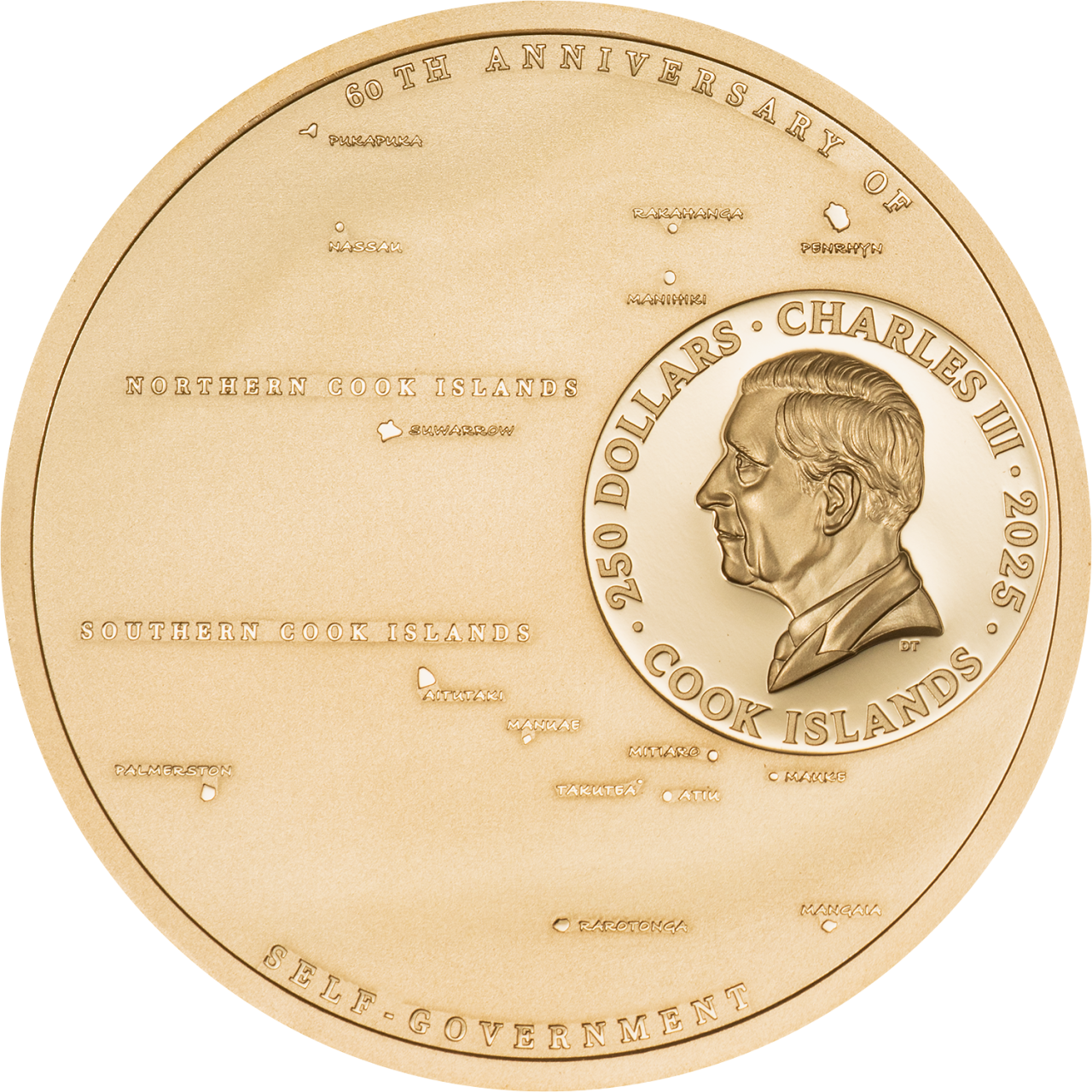 Zum 60. Jahrestag der Selbstbestimmung der Cook-Inseln präsentiert die CIT eine atemberaubende Gedenkmünze, die die Schönheit und den Geist dieses einzigartigen Inselstaates in Gold verewigt.