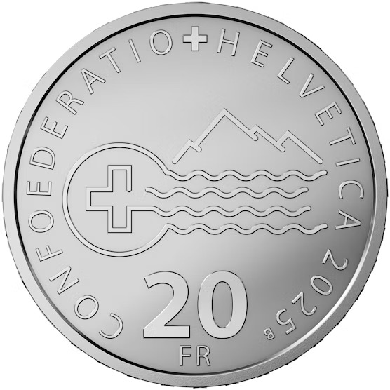 Die Wertseite zeigt den Nominalwert von 20 Franken, den Schriftzug «CONFOEDERATIO HELVETICA», das Prägejahr 2025 sowie das Münzzeichen «B» für Bern.