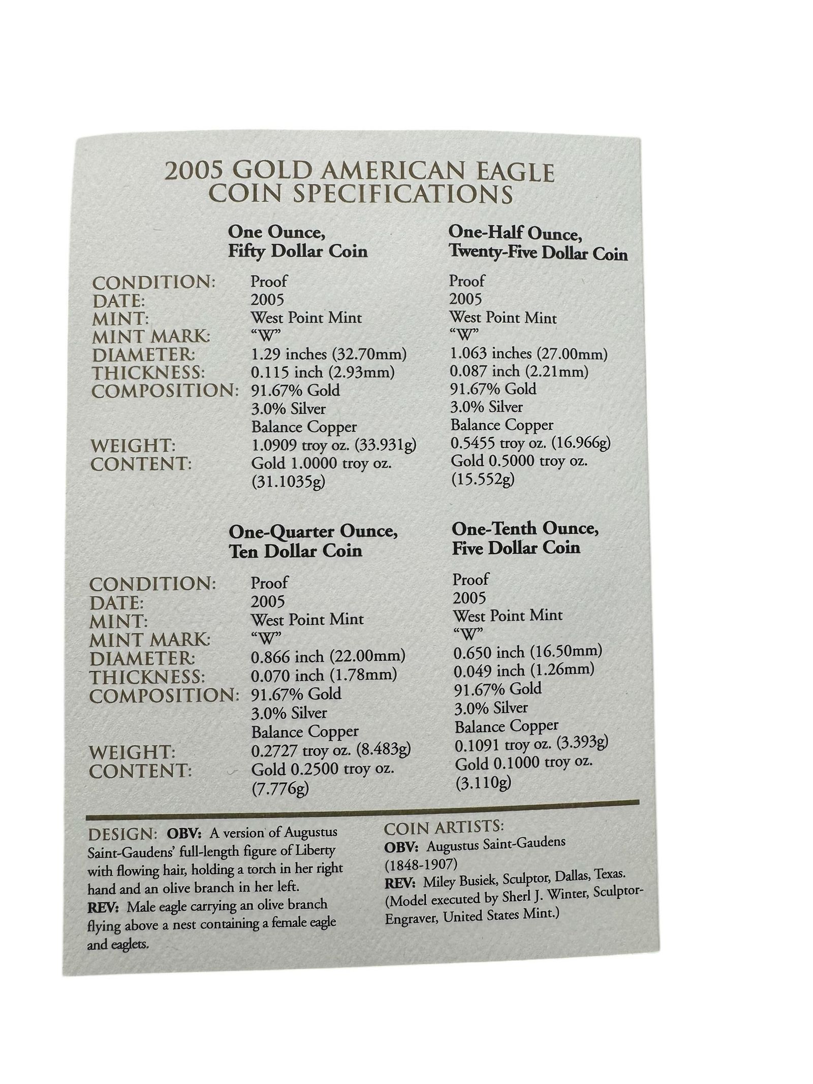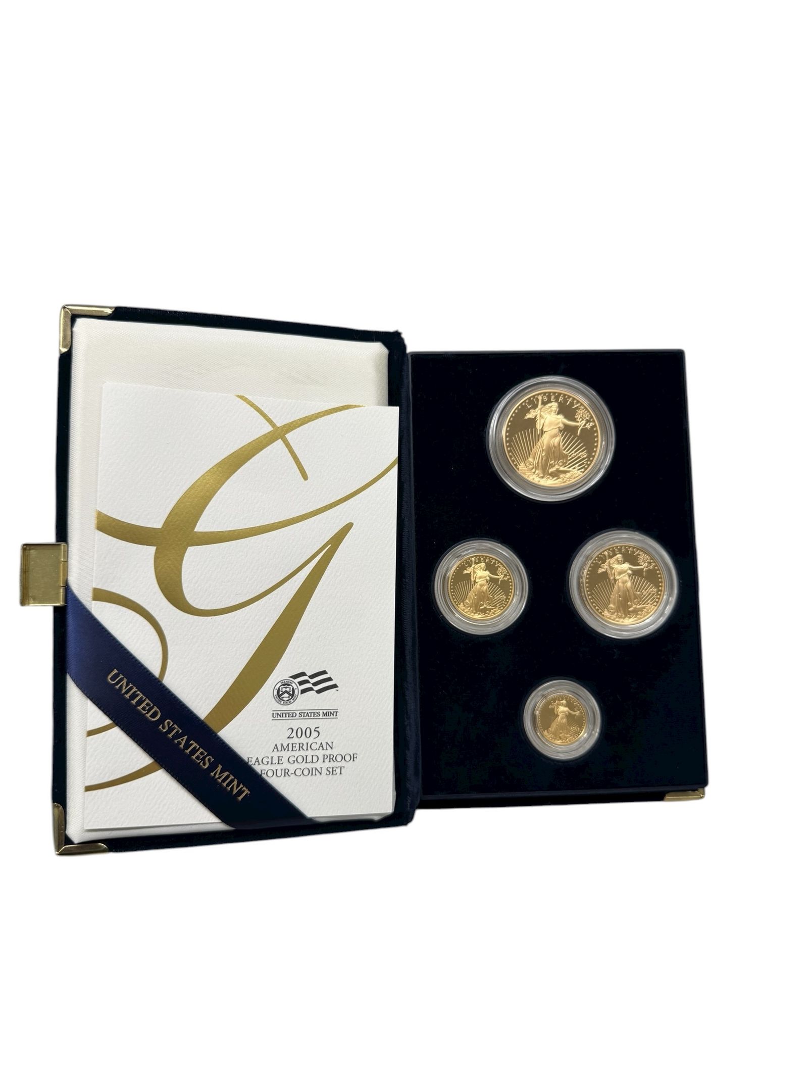 Das 2005 Gold American Eagle Proof Four Coin Set ist ein echtes Sammlerstück und zählt zu den begehrtesten Ausgaben der United States Mint. In diesem exklusiven Set sind vier Proof-Goldmünzen enthalten, die jeweils in höchster Prägequalität gefertigt wurden.